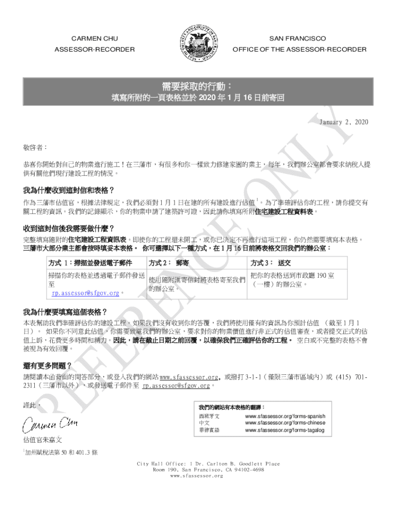 CARMEN CHUSAN FRANCISCOASSESSORRECORDEROFFICE OF THE ASSESSORRECORDER 2020 1 16 January 2, 2020 1
