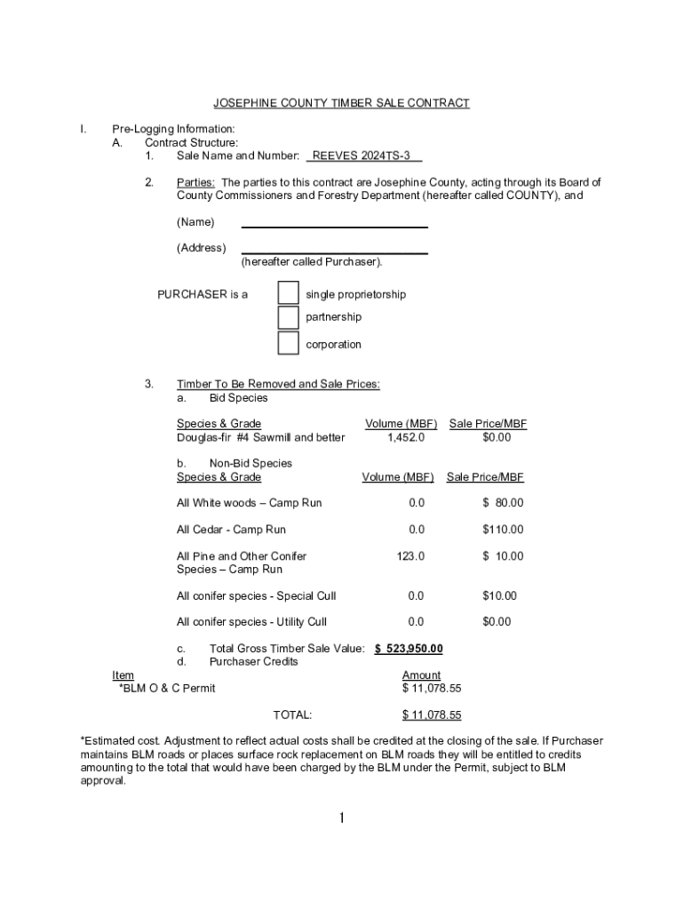 Get the free JOSEPHINE COUNTY TIMBER SALE CONTRACT I. Pre- ...