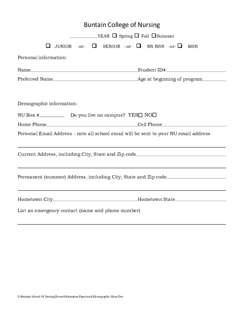 JUNIORorSpringFallSENIOR orSummerRNBSN orMSNPersonal information: