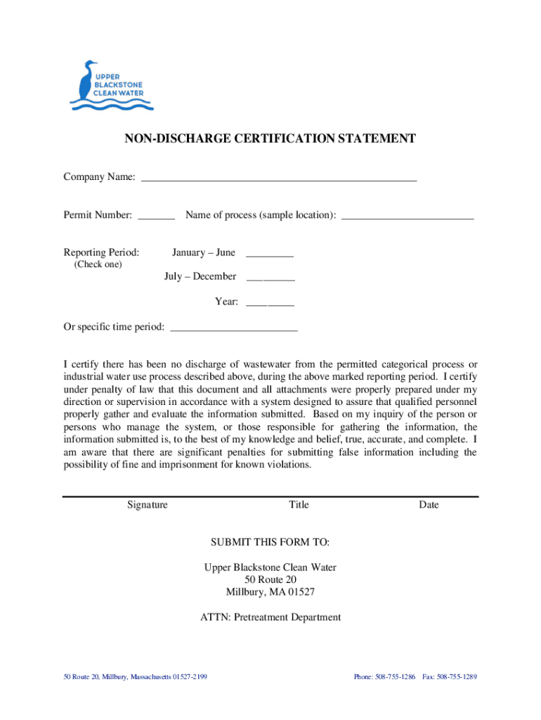 Fill out your non-discharge certification statement online with pdfFiller!