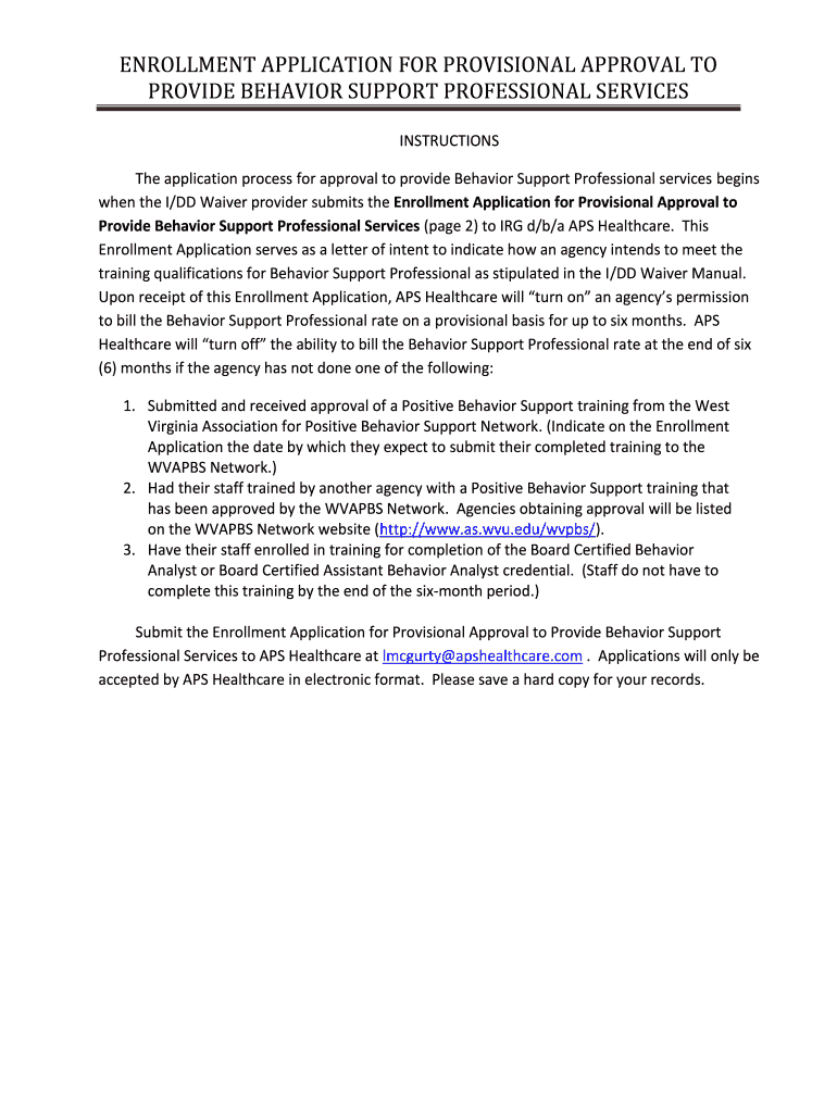 ENROLLMENT APPLICATION FOR PROVISIONAL APPROVAL TO PROVIDE BEHAVIOR SUPPORT PROFESSIONAL SERVICES