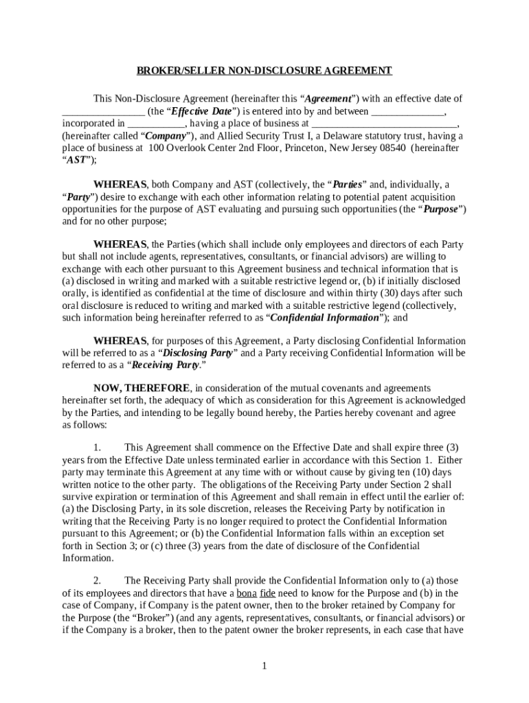 How should you fill out the NDA Broker for Company 9.29.23 template