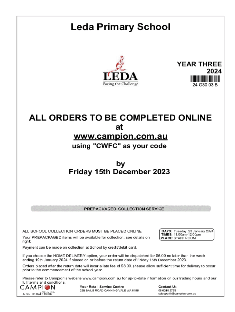 Friday 15th December 2023ALL SCHOOL COLLECTION ORDERS MUST BE PLACED ONLINE