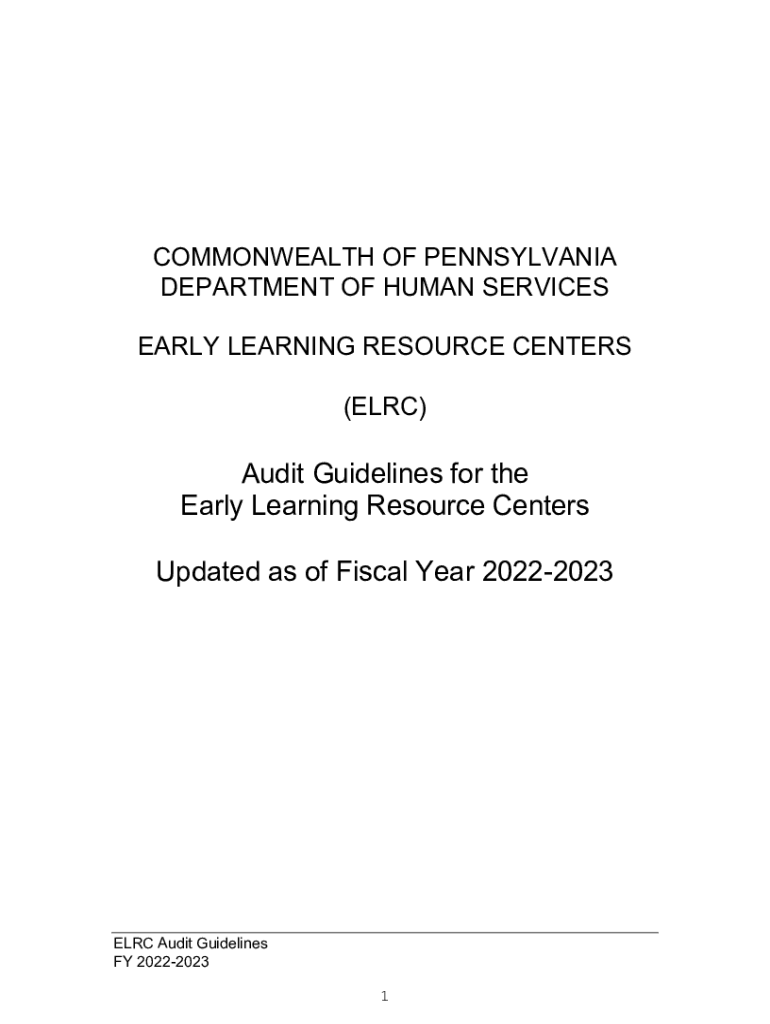 COMMONWEALTH OF PENNSYLVANIA DEPARTMENT OF HUMAN SERVICES EARLY LEARNING RESOURCE CENTERS (ELRC)Audit Guidelines for the Early Learning Resource Centers Updated as of Fiscal Year 20222023ELRC Audit