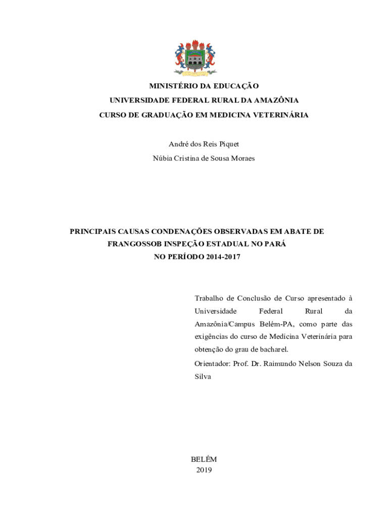 MINISTRIO DA EDUCAO UNIVERSIDADE FEDERAL RURAL DA AMAZNIA CURSO DE GRADUAO EM MEDICINA VETERINRIAAndr dos Reis Piquet Nbia Cristina de Sousa MoraesPRINCIPAIS CAUSAS CONDENAES OBSERVADAS EM ABATE DE