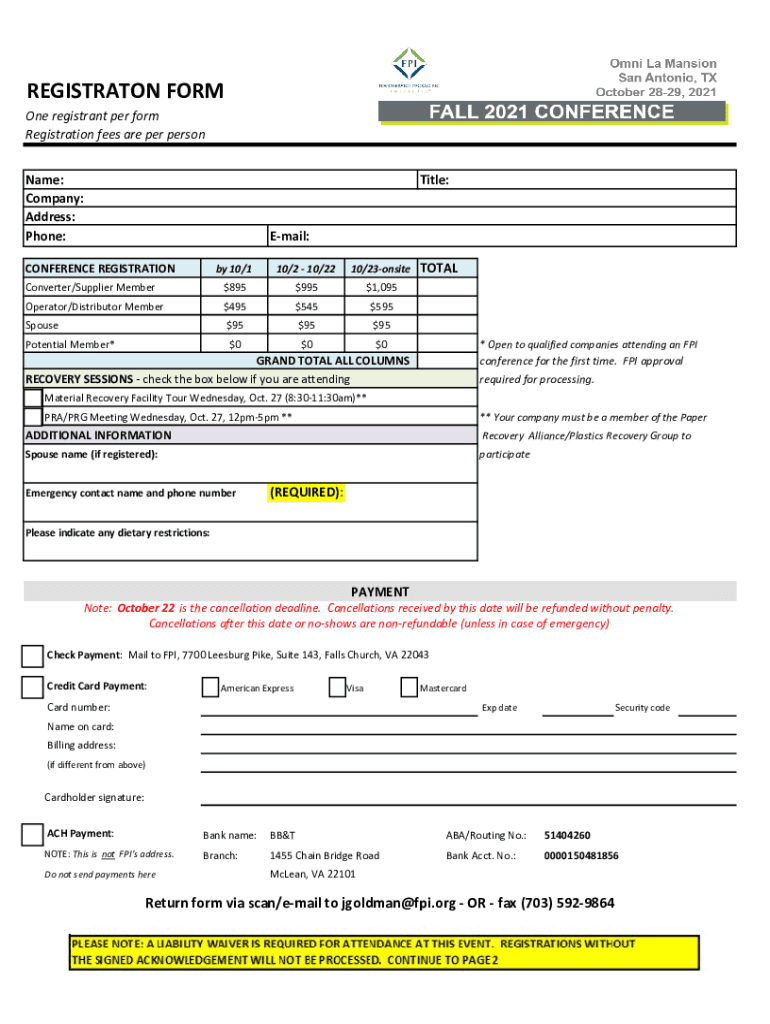Phone:Title:Email:CONFERENCE REGISTRATION by 10/110/2 10/2210/23onsiteConverter/Supplier Member$$895995$1,095Operator/Distributor