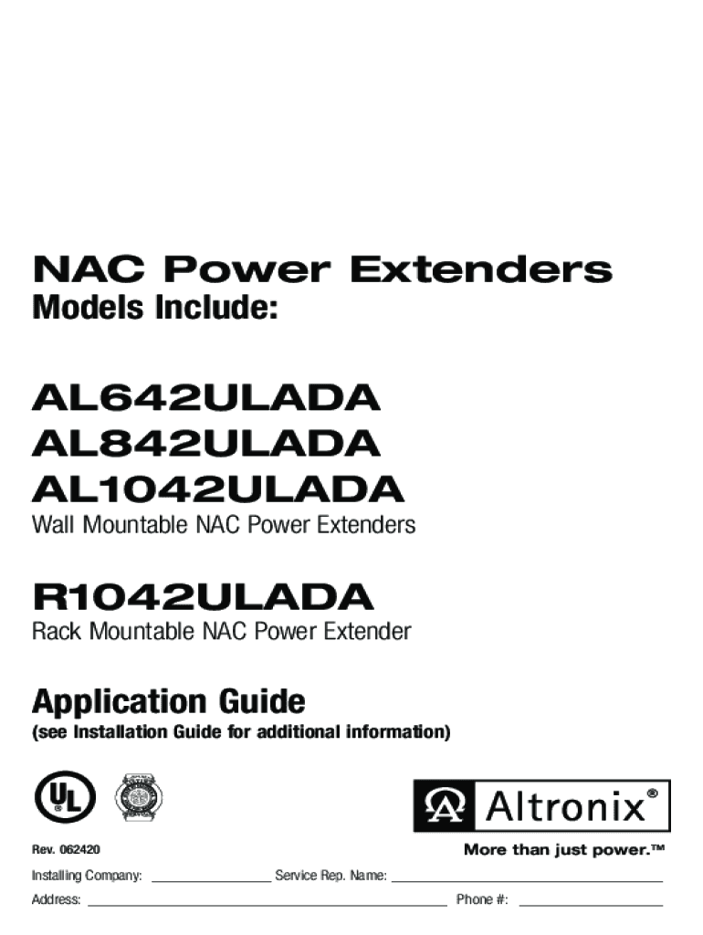 NAC Power Extenders Models Include:AL642ULADA AL842ULADA AL1042ULADA Wall Mountable NAC Power ExtendersR1042ULADA Rack Mountable NAC Power ExtenderApplication Guide(see Installation Guide for additional