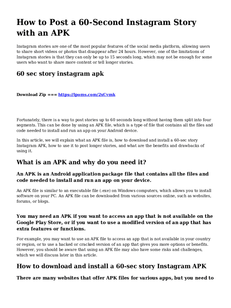 How to Post a 60Second Instagram Story with an APK Instagram stories are one of the most popular features of the social media platform, allowing users to share short videos or photos that disappear