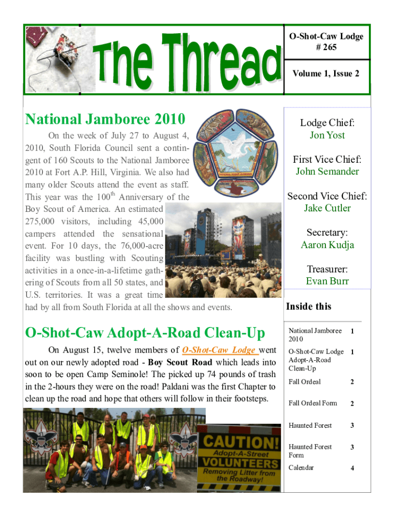 2010, South Florida Council sent a contingent of 160 Scouts to the National Jamboree