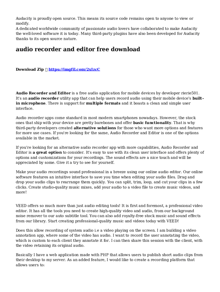 Audio Recorder And Editor is not the form you're looking for?Search for another form here.