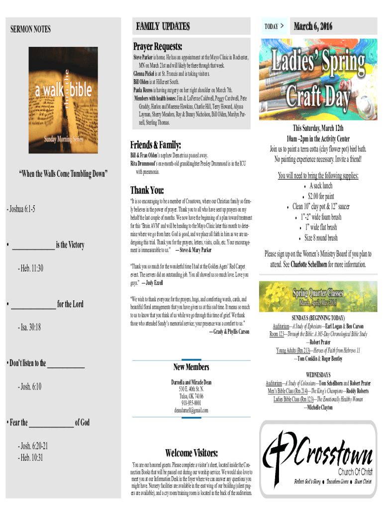 SERMON NOTES9/29/13FAMILY UPDATESPrayer Requests: Steve Parker is home. He has an appointment at the Mayo Clinic in Rochester , MN on March 21st and will likely be there through that week. Glenna