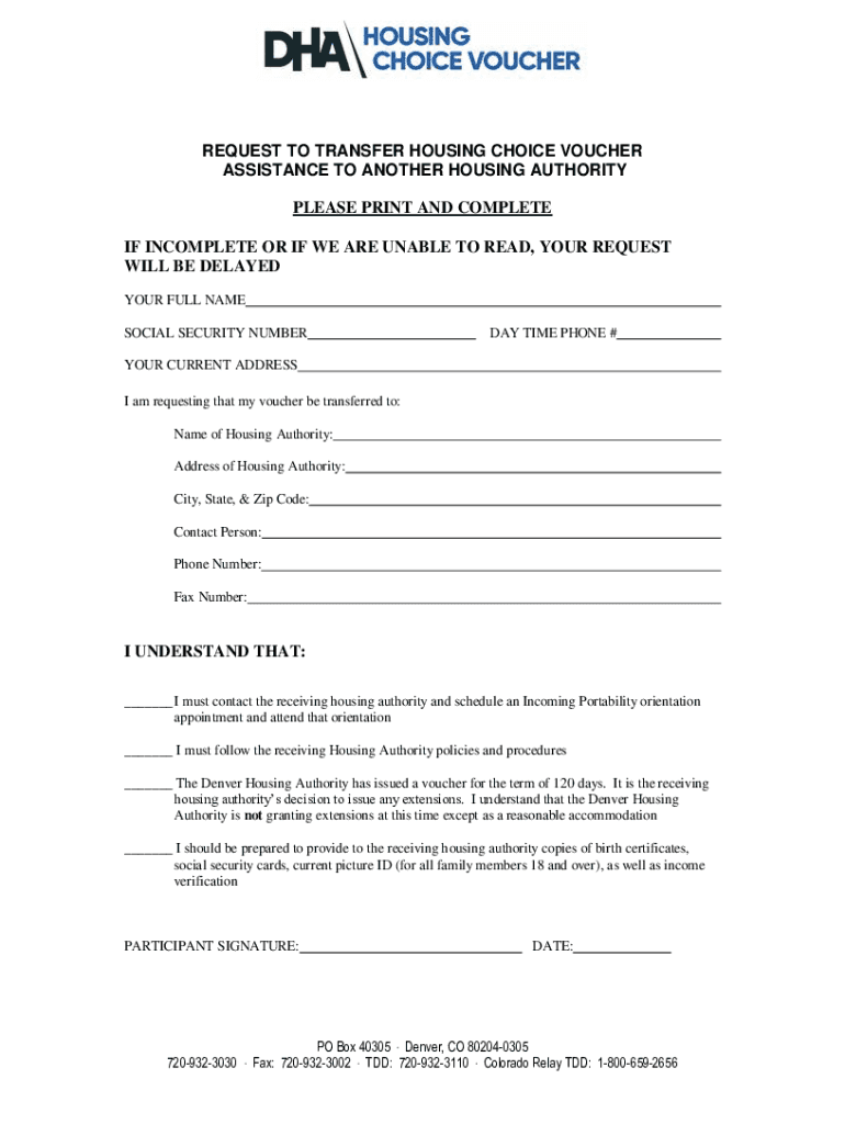 REQUEST TO TRANSFER HOUSING CHOICE VOUCHER