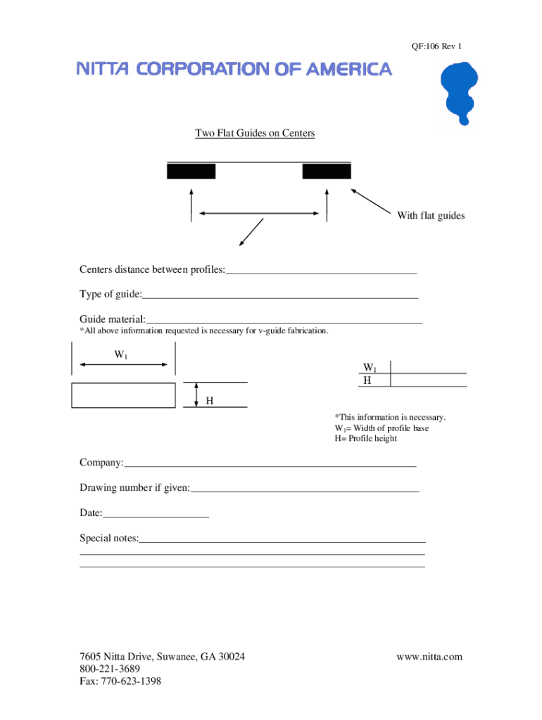 QF:106 Rev 1Two Flat Guides on CentersWith flat guidesCenters distance between profiles:___