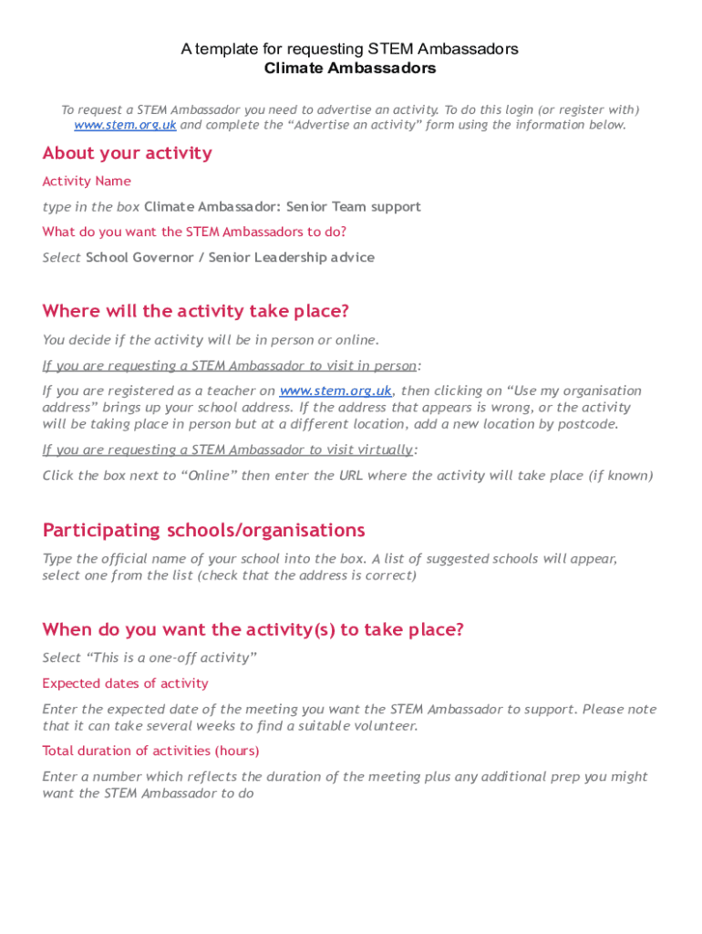 To request a STEM Ambassador you need to advertise an activity. To do this login (or register with)