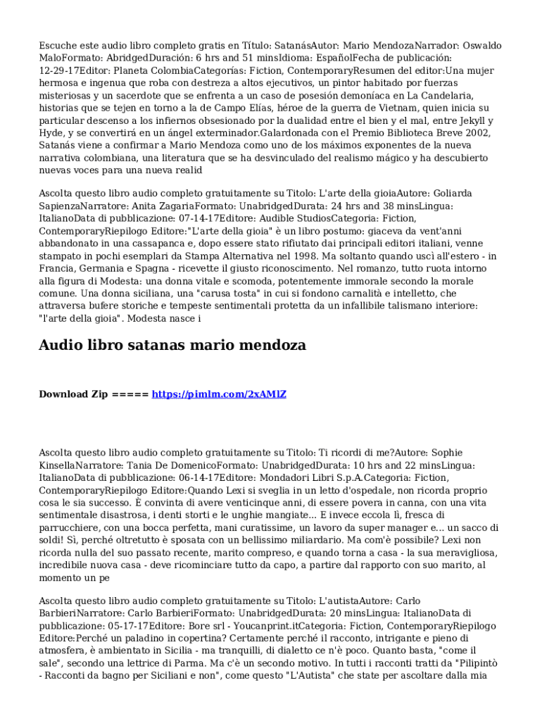 Ottieni il gratuito Audio Libro Satanas Mario Mendoza