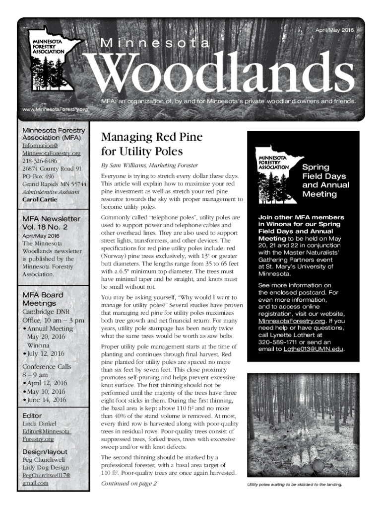 April/May 2016M i n n e s o t aWoodlandsMFA: an organization of, by and for Minnesotas private woodland owners and friends.www.MinnesotaForestry.orgMinnesota Forestry Association (MFA) Information@