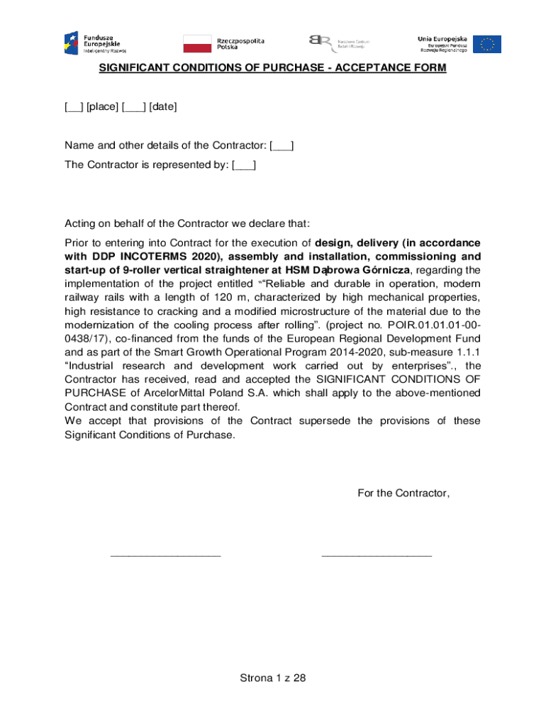 Get the free SIGNIFICANT CONDITIONS OF PURCHASE - ACCEPTANCE FORM