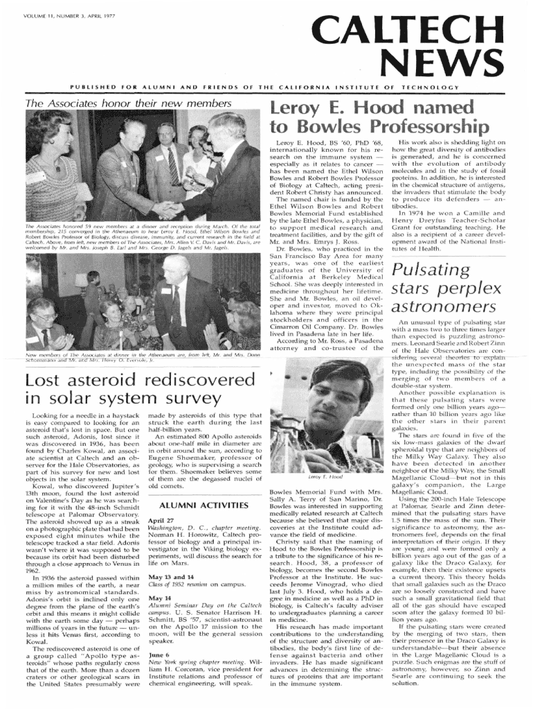 VOLUME 11 , NUMBER 3, APR IL 1977CALTECHNEWSPUBLISHED FOR ALUMNIANDFRIEND S O F T H E C ALIFORNI A I NST I TUTE O FThe Associates honor their new membersThe Assoc iates honored 59 new members at a