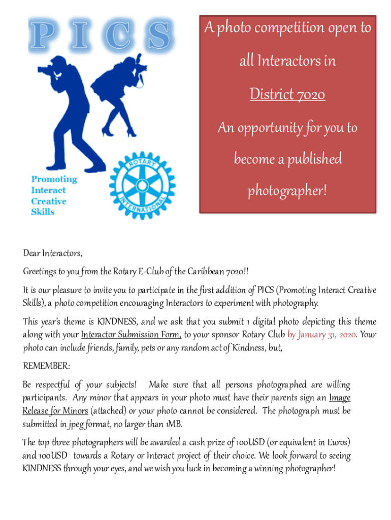 A photo competition open to all Interactors in Dist3ict 7020 An opporC[nit7 for you to become a published photog3apher!Dear Interactors, Greetings to you f3om the Rotar7 EClub of the Caribbean 7020!!
