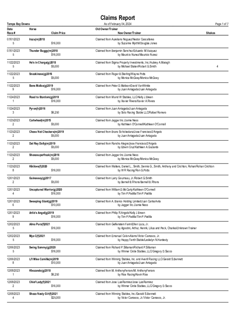 5Irazu(m)2018As of February 04, 2024Page 1 of 7Claim Priced Owner/Trainer
