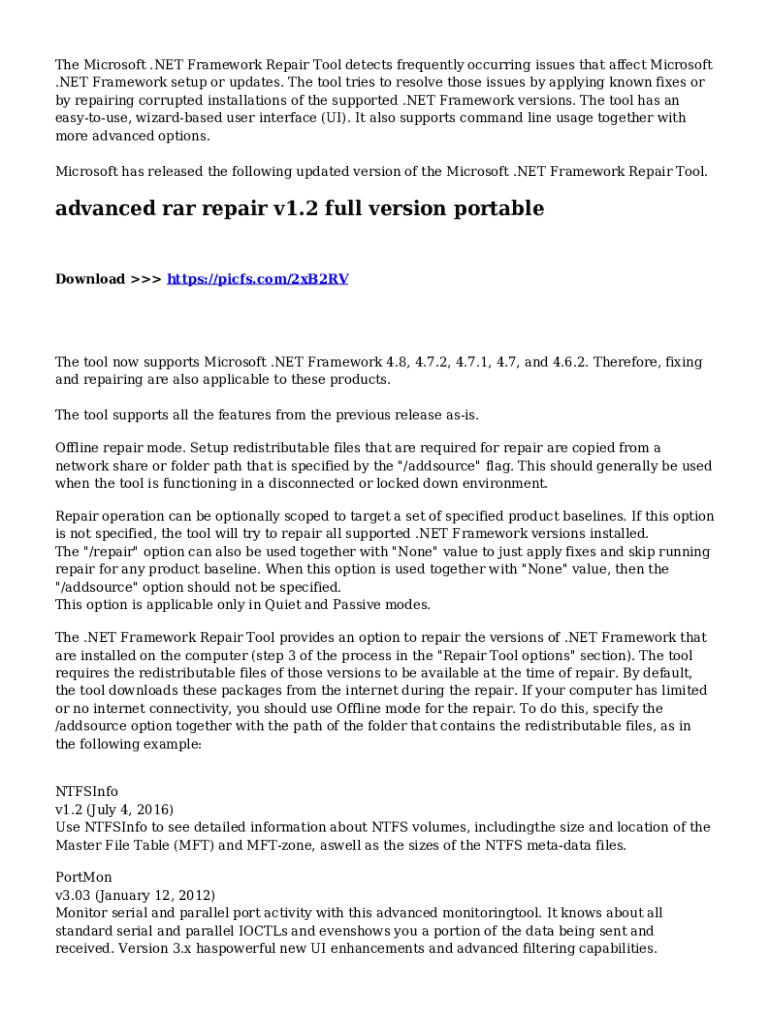 .NET Framework setup or updates. The tool tries to resolve those issues by applying known fixes or