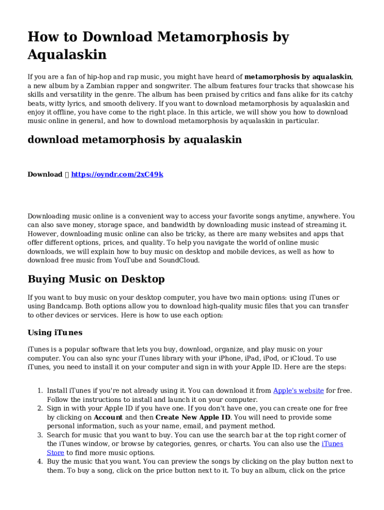 How to Download Metamorphosis by Aqualaskin If you are a fan of hip-hop and rap music, you might have heard of metamorphosis by aqualaskin, a new album by a Zambian rapper and songwriter. The album