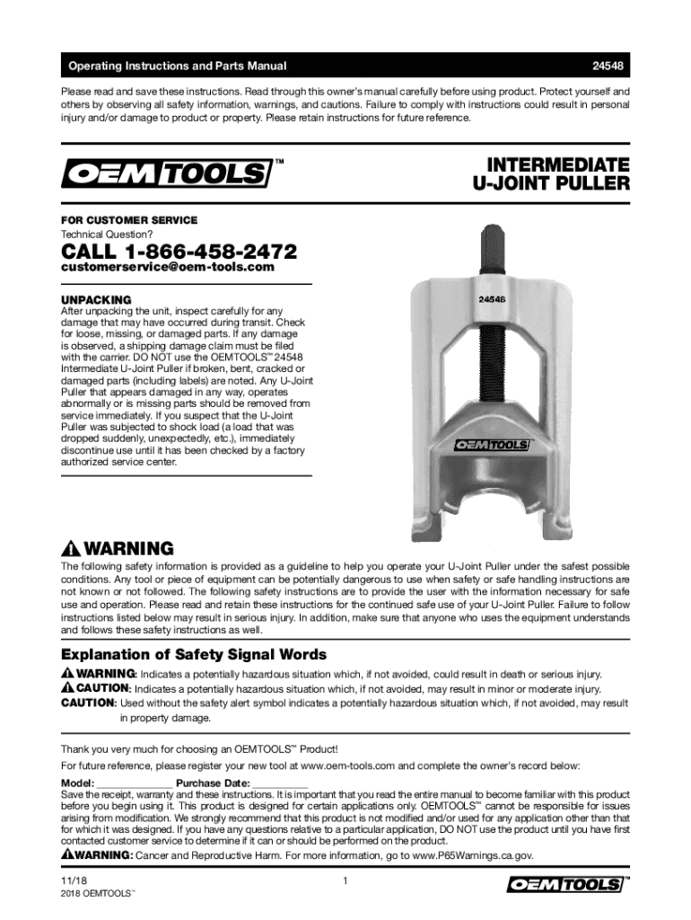 OEM Tools 24548 Operating refers to a specific set of guidelines and documentation required for operating certain OEM tools used in automotive and industrial applications.