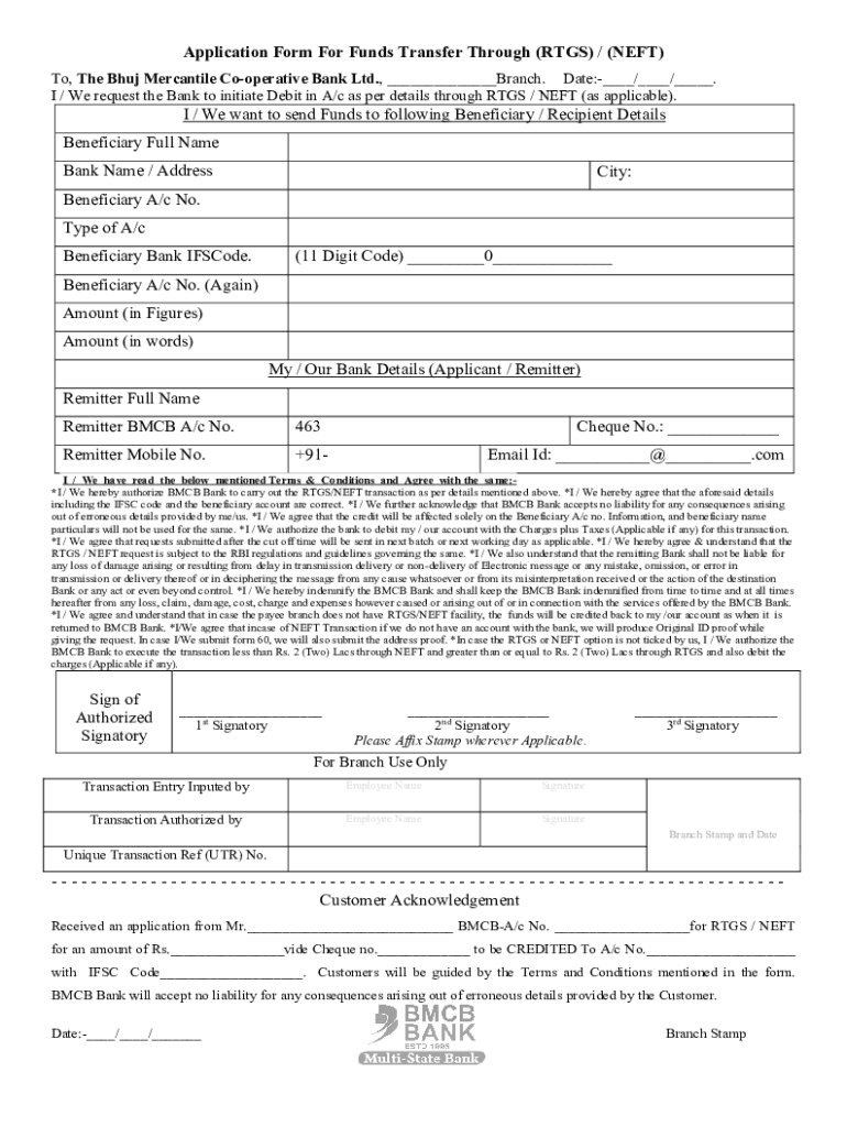 Get the free bombay mercantile bank rtgs form pdf