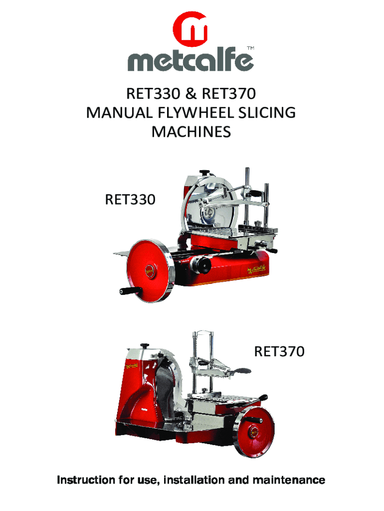 RET330 & RET370 MANUAL FLYWHEEL SLICING MACHINESRET330RET370Instruction for use, installation and maintenanceInstallation, use and maintenanceLIST OF CONTENTS Page Page 1. INTRODUCTION ............................................................................................................................................................