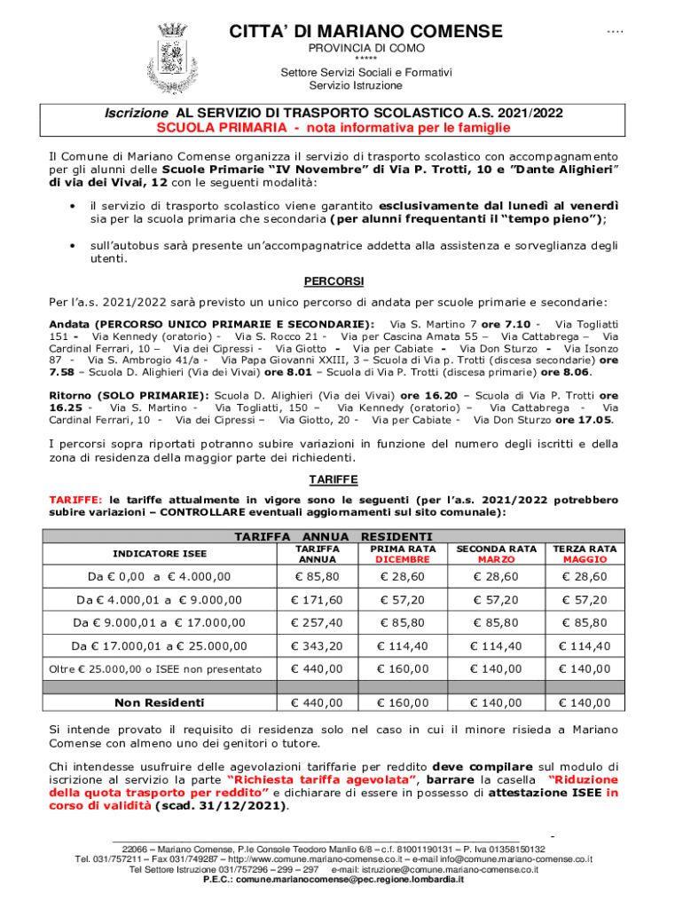 Servillo IstruzioneIscrizione AL SERVILLO DI TRANSPORT SCHOLASTIC A.S. 2021/2022