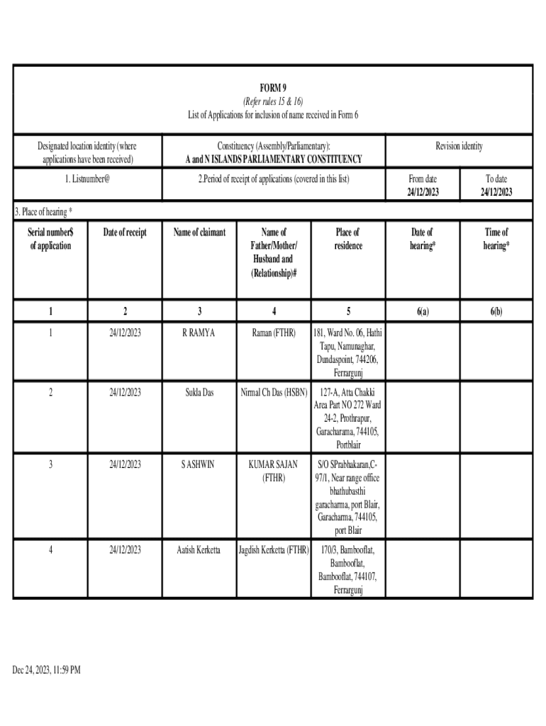 Get the free Dec 24, 2023, 11:59 PM FORM 9 (Refer rules 15 & 16) List of ...