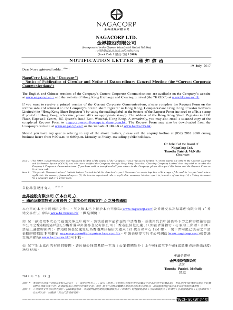Get the free Nagacorp : SUPPLEMENTAL CIRCULAR IN RELATION TO THE ...