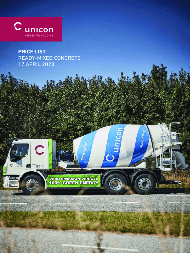 PRICE LIST READYMIXED CONCRETE 17 APRIL 2023STANDARD PRODUCTS AND FUNCTIONAL CONCRETESUNIGREEN STANDARD PRODUCTS AND FUNCTIONAL CONCRETESUNICONS PRODUCT PROGRAMMEUNIGREENIncludes standard products