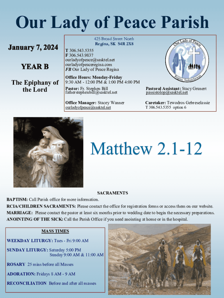Our Lady of Peace Parish 425 Broad Street North Regina, SK S4R 2X8 T 306.543.5355 F 306.543.9837 ourladyofpeace@sasktel.net ourladyofpeaceregina.com FB Our Lady of Peace ReginaThe Epiphany of the
