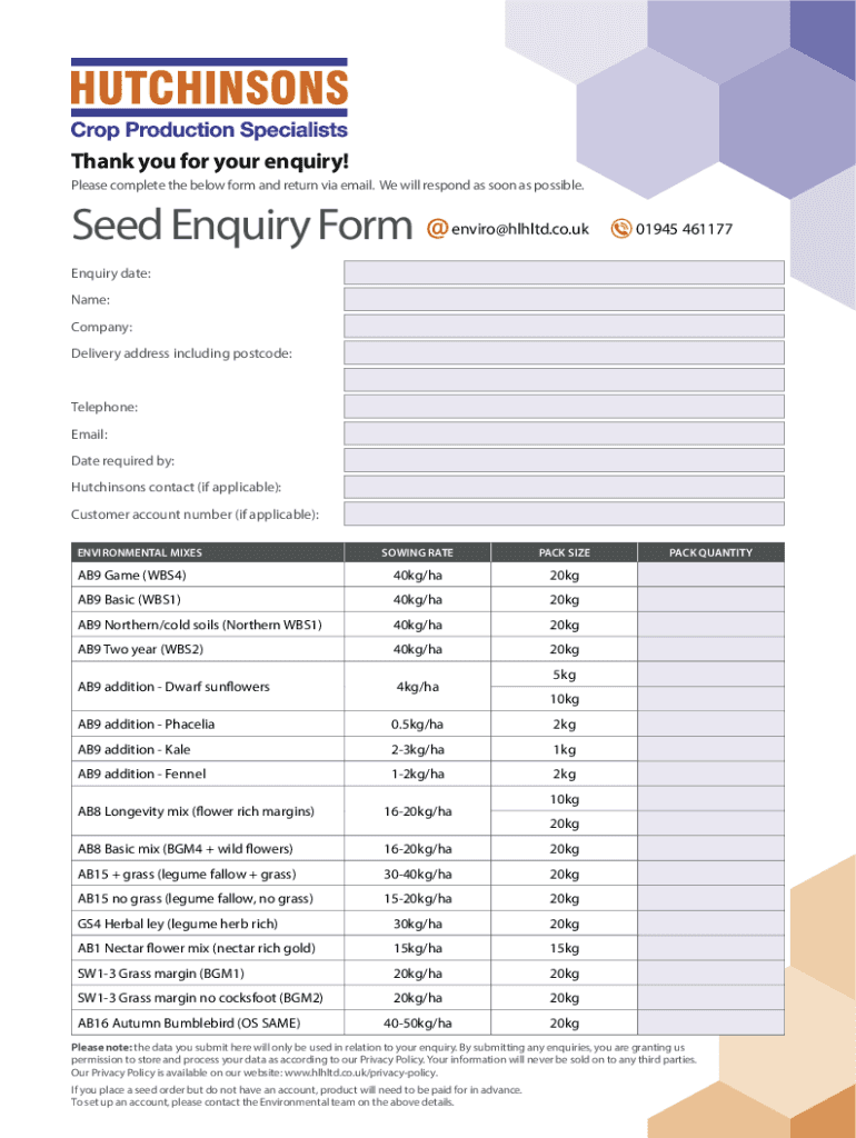 Please complete the below form and return via email. We will respond as soon as possible. Seed Inquiry Formenviro@hlhltd.co.uk01945 461177Enquiry date: