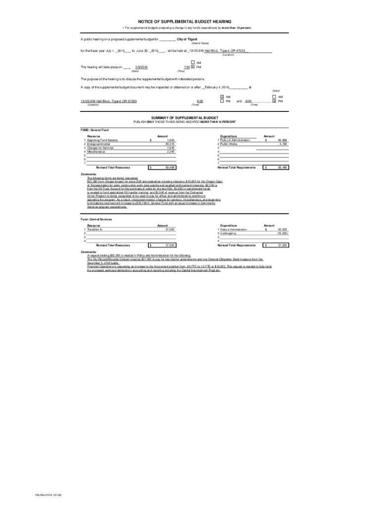 Get the free NOTICE OF SUPPLEMENTAL BUDGET HEARING - Yamhill County