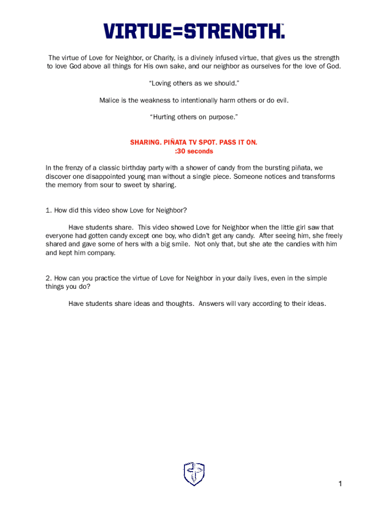 Loving others as we should. Malice isthe weakness tointentionally harm others or do evil. Hurting others on purpose.SHARING. PIATA TV SPOT. PASS IT ON. :30 seconds In the frenzy of a classic birthday