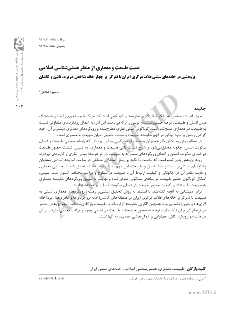 Get the free Nature and Architecture in Islamic Ontology A survey on ...