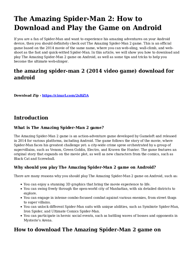 The Amazing SpiderMan 2: How to Download and Play the Game on Android If you are a fan of SpiderMan and want to experience his amazing adventures on your Android device, then you should definitely