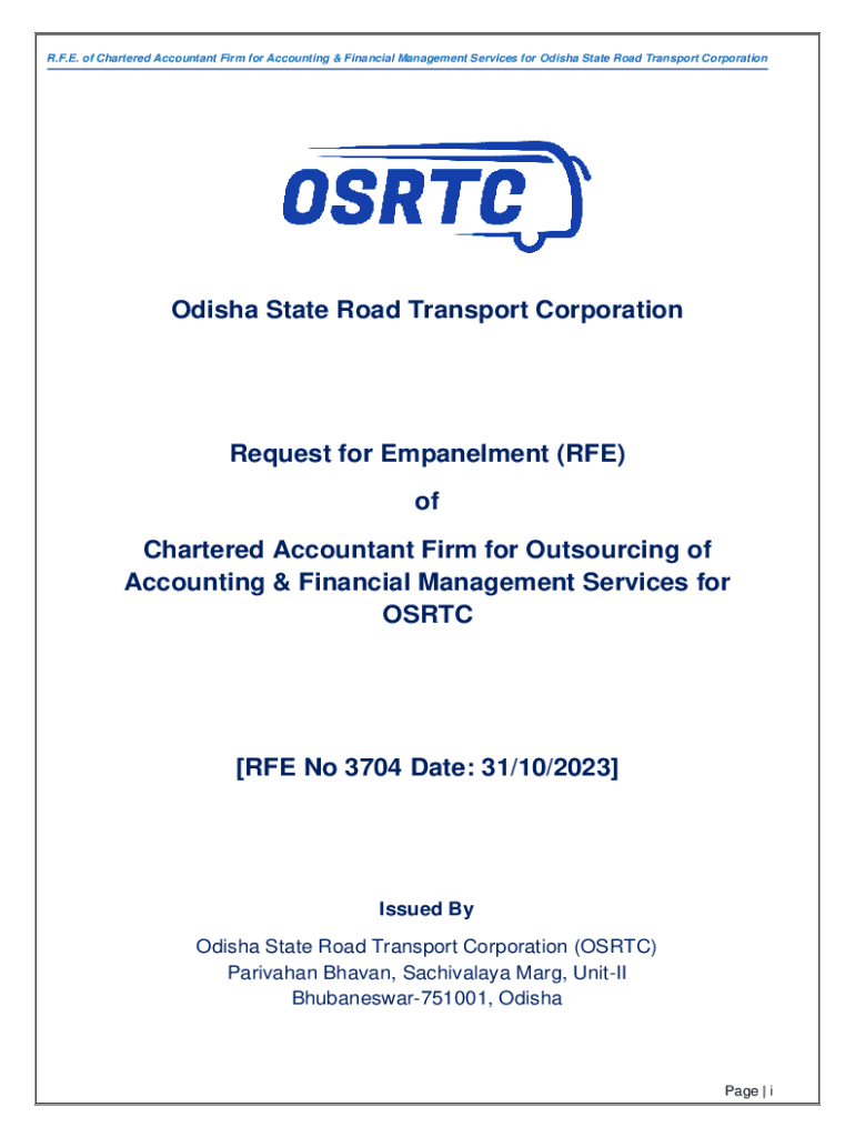 R.F.E. of Chartered Accountant Firm for Accounting & Financial Management Services for Odisha State Road Transport CorporationOdisha State Road Transport CorporationRequest for Empanelment (RFE) of