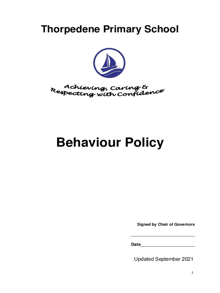 Thorpedene Primary SchoolBehaviour PolicySigned by Chair of Governors___ Date___Updated September 2021 1Promoting Positive Behaviour In order to support positive behaviour, and in recognition of the