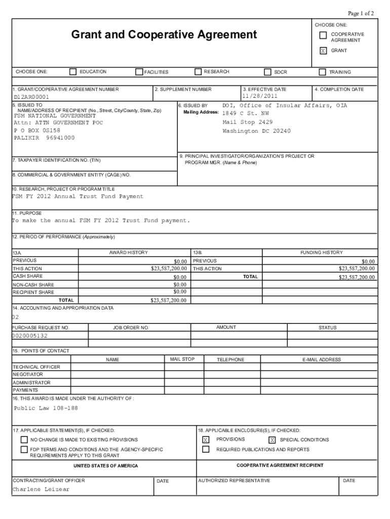CHOOSE ONE:Grant and Cooperative AgreementCOOPERATIVE