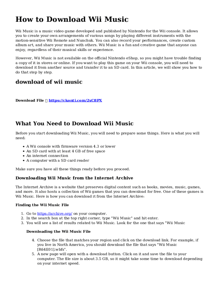 How to Download Wii Music is a music video game developed and published by Nintendo for the Wii console. It allows