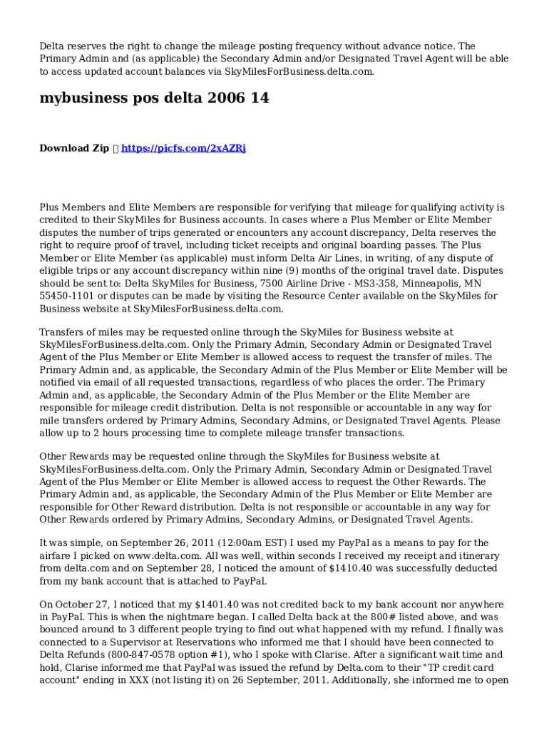Delta reserves the right to change the mileage posting frequency without advance notice. The Primary Admin and (as applicable) the Secondary Admin and/or Designated Travel Agent will be able to access