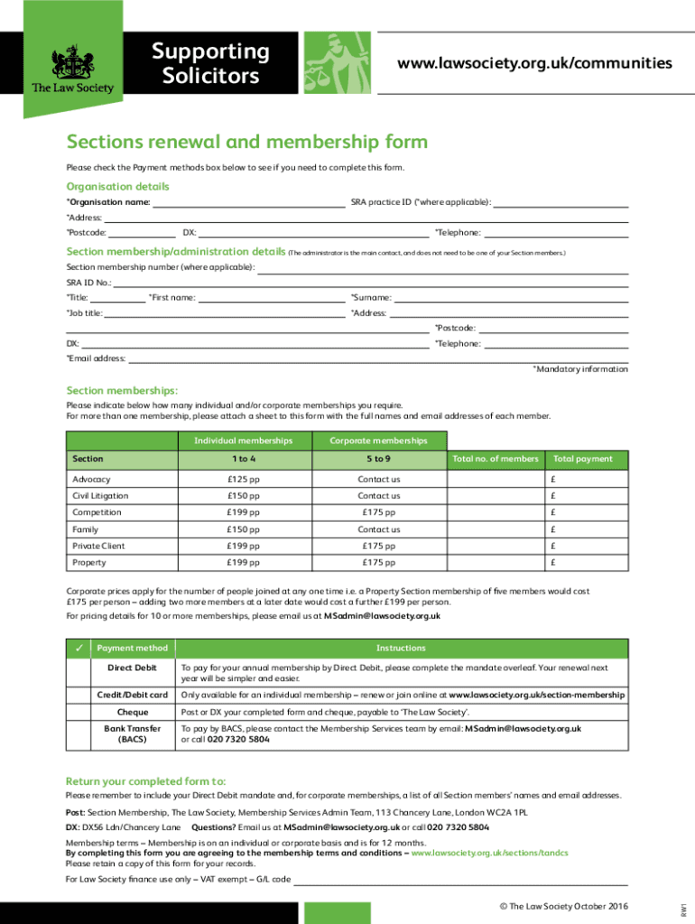 Solicitors.lawsociety.org.uk/communitiesSections renewal and membership form