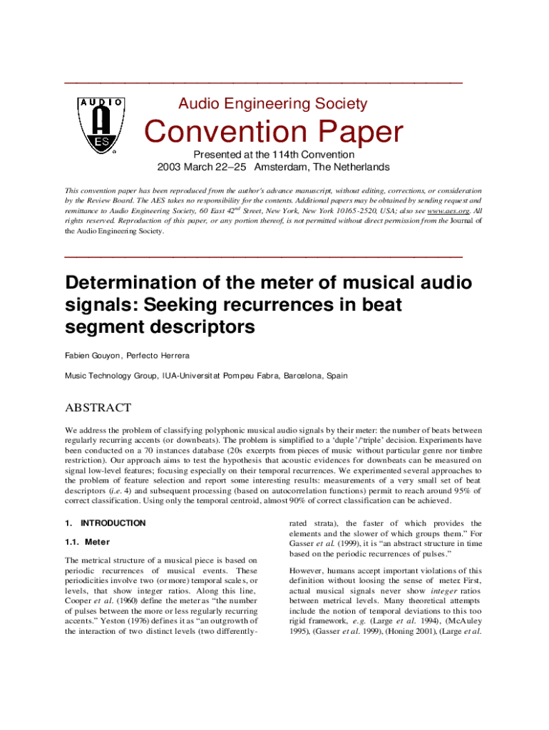 Get the free Audio Engineering Society. Convention Paper. Presented ... - mtg upf