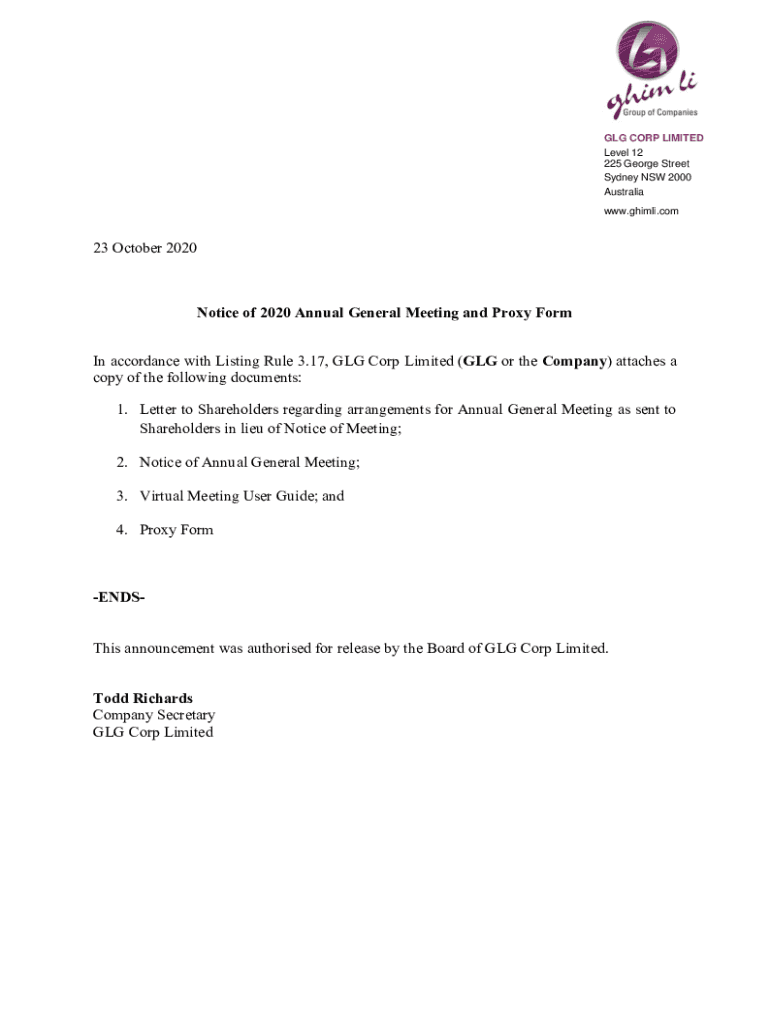 Get the free Notice of Annual General Meeting/Proxy Form - GLG Corp ...