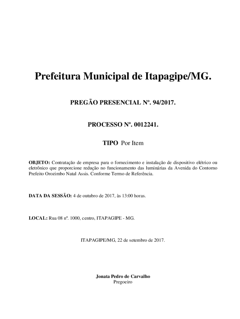 Obtenha o gratuito OBJETO: Contratao de empresa para o fornecimento e instalao de dispositivo elt...