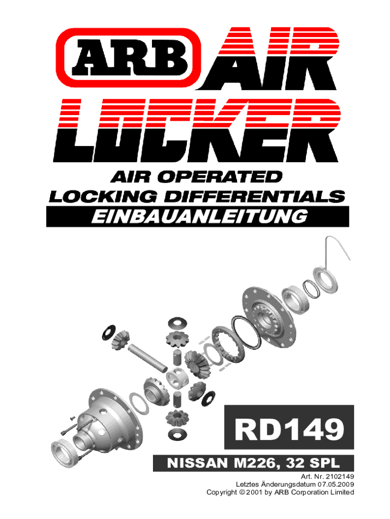 EINBAUANLEITUNGRD149 NISSAN M226, 32 SPL Art. Nr. 2102149 Letztes nderungsdatum 07.05.2009 Copyright 2001 by ARB Corporation LimitedFr Schden, die durch die Anwendung der in dieser Einbauanleitung