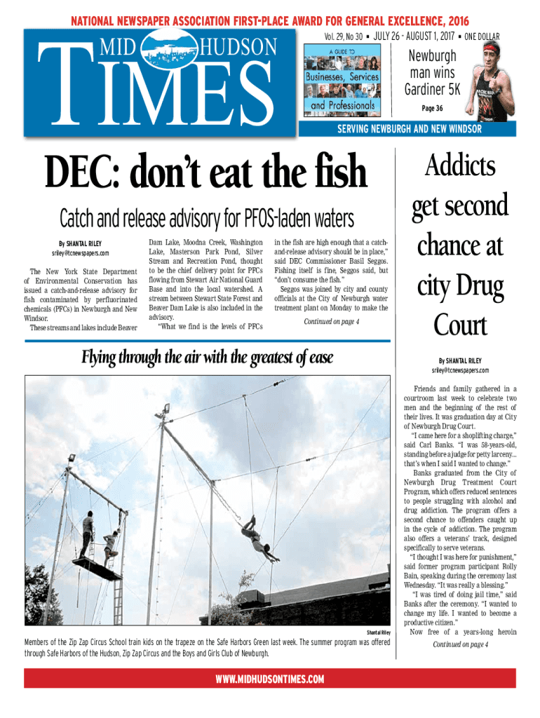 TIMESNATIONAL NEWSPAPER ASSOCIATION FIRSTPLACE AWARD FOR GENERAL EXCELLENCE, 2016MIDHUDSONVol. 29, No 303JULY 26 AUGUST 1, 2017Page 36SERVING NEWBURGH AND NEW WINDSORCatch and release advisory for